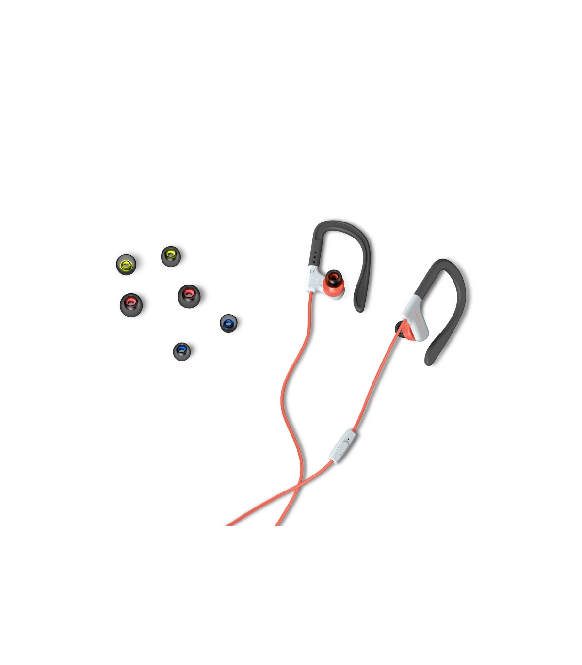 Características destacadas | - Auriculares deportivos con diseño intrauditivo. - Resistencia al sudor y salpicaduras para practicar deporte con comodidad. - Cable de 1,2 m de longitud con conector miniJack. - Botón para controlar la reproducción integrado. - Micrófono incorporado para responder llamadas. - Almohadillas intercambiables en tres tamaños diferentes. |