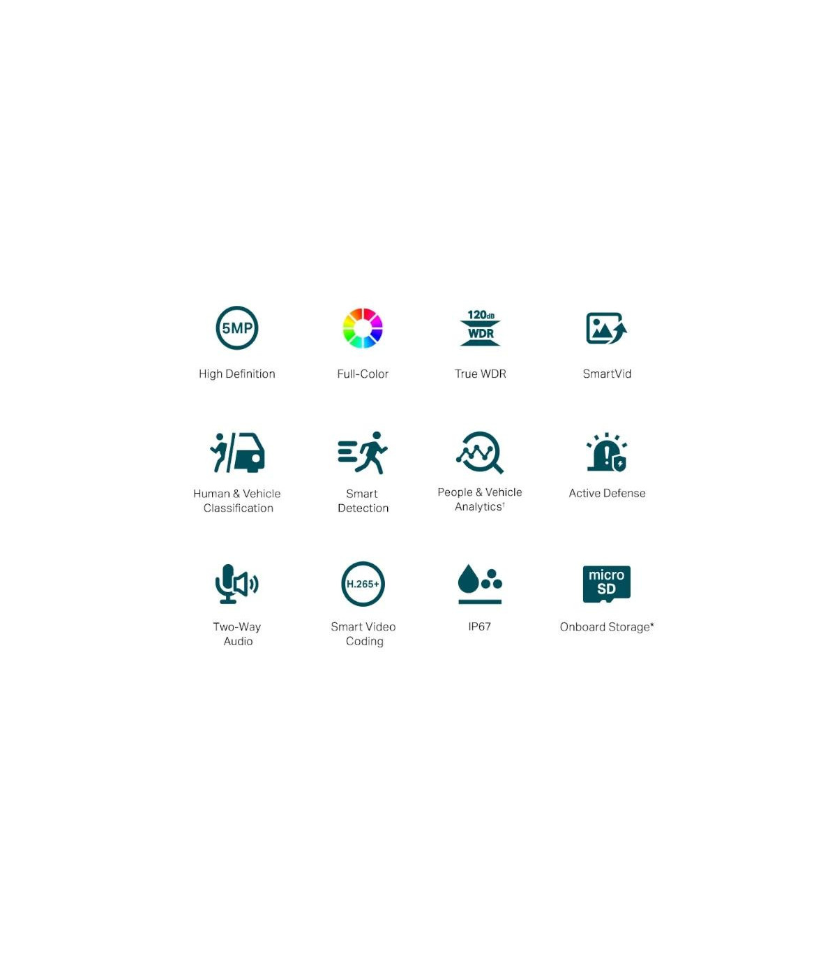 | Características | Red - Protocolo: TCP/IP, UDP, ICMP, HTTP, HTTPS, DHCP, DNS, RTSP, NTP, UPnP UDP, SSL/TLS - ONVIF - API: Open Network Video Interface (Profile S) - Vista en vivo simultánea 3 transmisiones principales y 3 subtransmisiones - Client: VIGI App, VIGI Security Manager, Web UI, VIGI VMS - Navegador web: Google Chrome® 57 and above Firefox® 52 and above Safari® 11 and above Microsoft® Edge 91 and above - Nube - Seguridad: Protección con contraseña, cifrado HTTPS, filtro de dirección IP, autenticación implícita Alarma y Gestión de Eventos - Evento inteligente Clasificación de personas y vehículos Detección de intrusiones Detección de cruce de líneas Región que ingresa a la detección Detección de salida de región Detección de objetos abandonados Detección de eliminación de objetos Detección de merodeo Marco inteligente Detección de personas Detección de vehículos - Evento Básico Detección de movimiento Detección de manipulación de vídeo Excepción (inicio de sesión ilegal) Detección de cambio de escena - Enlace de alarma Grabación de vídeo en tarjeta de memoria Envío de mensajes Advertencia audible Luz blanca intermitente - Notificación de salida: Mensaje push Alimentación - Fuente de alimentación 12V DC ± 5%, Max. 9.7 W, 5.5 mm Coaxial Power Plug PoE: 802.3af/at, class 0, Max. 10.7 W Dimensiones y peso - 74 × 184 × 74 mm - 0.525 Kg Contiene - Cámara de red VIGI - Guía de inicio rápido - Accesorios para cables impermeables - Accesorios de montaje |