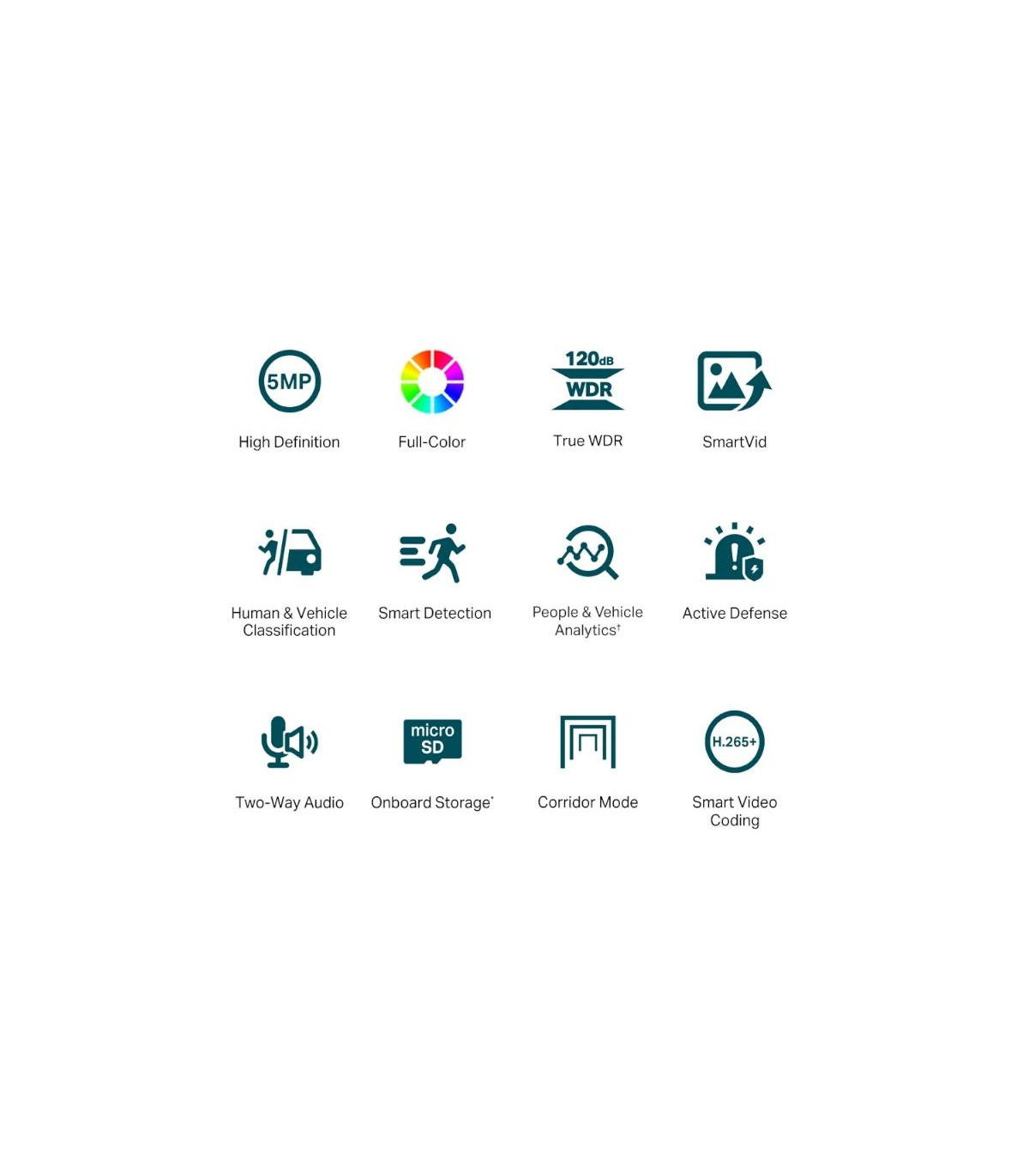 | Características | Red - Protocolo: TCP/IP, UDP, ICMP, HTTP, HTTPS, DHCP, DNS, RTSP, NTP, UPnP UDP, SSL/TLS - ONVIF - API: Interfaz de vídeo en red abierta (perfil S) - Vista en vivo simultánea 3 transmisiones principales y 3 subtransmisiones - Client: VIGI App, VIGI Security Manager, Web UI - Navegador web: Navegador web Google Chrome 57 y superior Firefox 52 y superior Safari 11 y superior Microsoft Edge 91 y superior - Nube - Seguridad: Protección con contraseña, cifrado HTTPS, filtro de dirección IP, autenticación implícita Audio - Comunicación de Audio: Audio Bidireccional - Entrada de audio - Salida de Audio - Compresión de audio - Frecuencia de muestreo de audio: 8KHz - Filtrado de ruido ambiental - Velocidad de bits de audio: 64 Kbps (ley G.711) Alarma - Clasificación inteligente de personas y vehículos de eventos - Detección de intrusión de área Detección de cruce de líneas Detección de personas Detección de vehículos Detección de entrada de región Detección de salida de región Detección de objetos abandonados Detección de eliminación de objetos Detección de merodeo - Detección básica: Detección de movimiento Detección de manipulación de vídeo Excepción (inicio de sesión ilegal) Detección de cambio de escena - Enlace de alarma: Grabación de vídeo con tarjeta de memoria, mensaje push, luz blanca intermitente - Notificación de salida: Mensaje push Alimentación - Fuente de alimentación: 12V DC ± 5%, Max. 9 W Enchufe de alimentación coaxial de 5,5 mm. PoE: 802.3af/at, clase 0, máx. 10.5W Dimensiones y peso - Φ123x84 mm - 0,24 g Contiene - Cámara de red VIGI - Guía de inicio rápido - Accesorios de montaje |