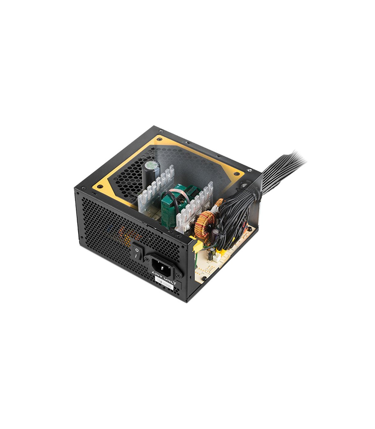 | Características | - Tipo: ATX con PFC activo - Datos técnicos: +3.3V - 20A / +5V - 20A / +12V - 50A / -12V - 0.3A / +5VSB - 2.5A - Voltaje: 230V - 3.5A - 47-63 Hz - Protecciones seguridad: OVP, OPP, SCP, UVP - Refrigeración: Ventilador ultra silencioso de 120 mm con control de velocidad inteligente - Dimensiones: 150 x 140 x 85 mm - Peso: 1.42 Kg Conectores - 1 x ATX MB 20+4 pines - 1 x EPS +12V 4+4 pines - 1 x PCIE 6+2 pines, 60cm - 1 x PCIE 6+2 pines, 75cm - 2 x SATA, 60cm - 2 x SATA, 75cm - 2 x SATA, 900cm - 1 x Molex 4 pines, 60cm - 1 x Molex 4 pines, 75cm - 1 x FDD, 90cm |