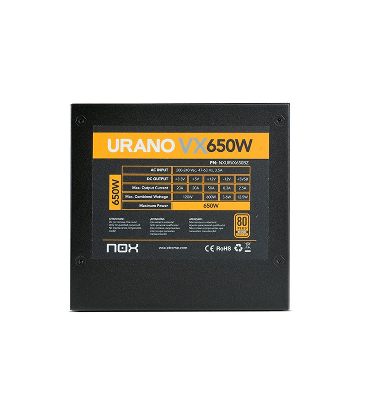 Urano VX 650W - Bronze EditionNuestras exitosas fuentes Urano evolucionan por dentro y por fuera. Nuevas líneas y nuevo aspecto para contener la evolución de una fuente que mejora rendimiento, prestaciones y ofrece multitud de posibilidades para profesionales y entusiastas.