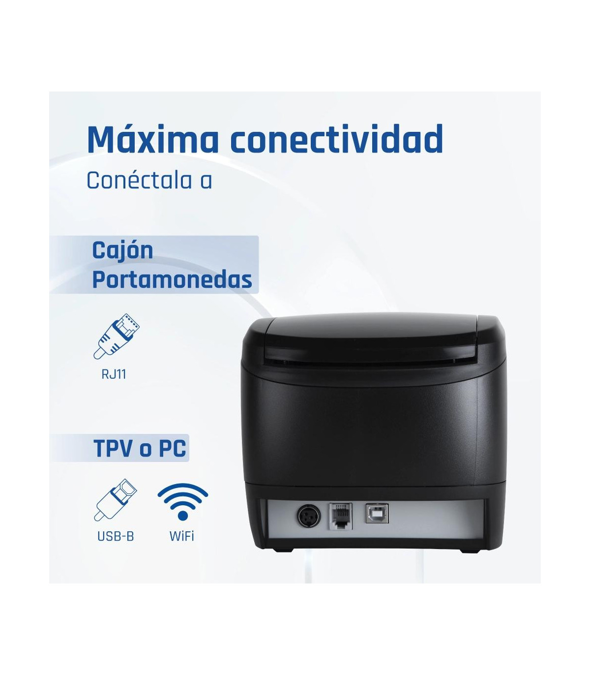 | Conectividad | - USB - WiFi - RJ11 (control cajón portamonedas) |