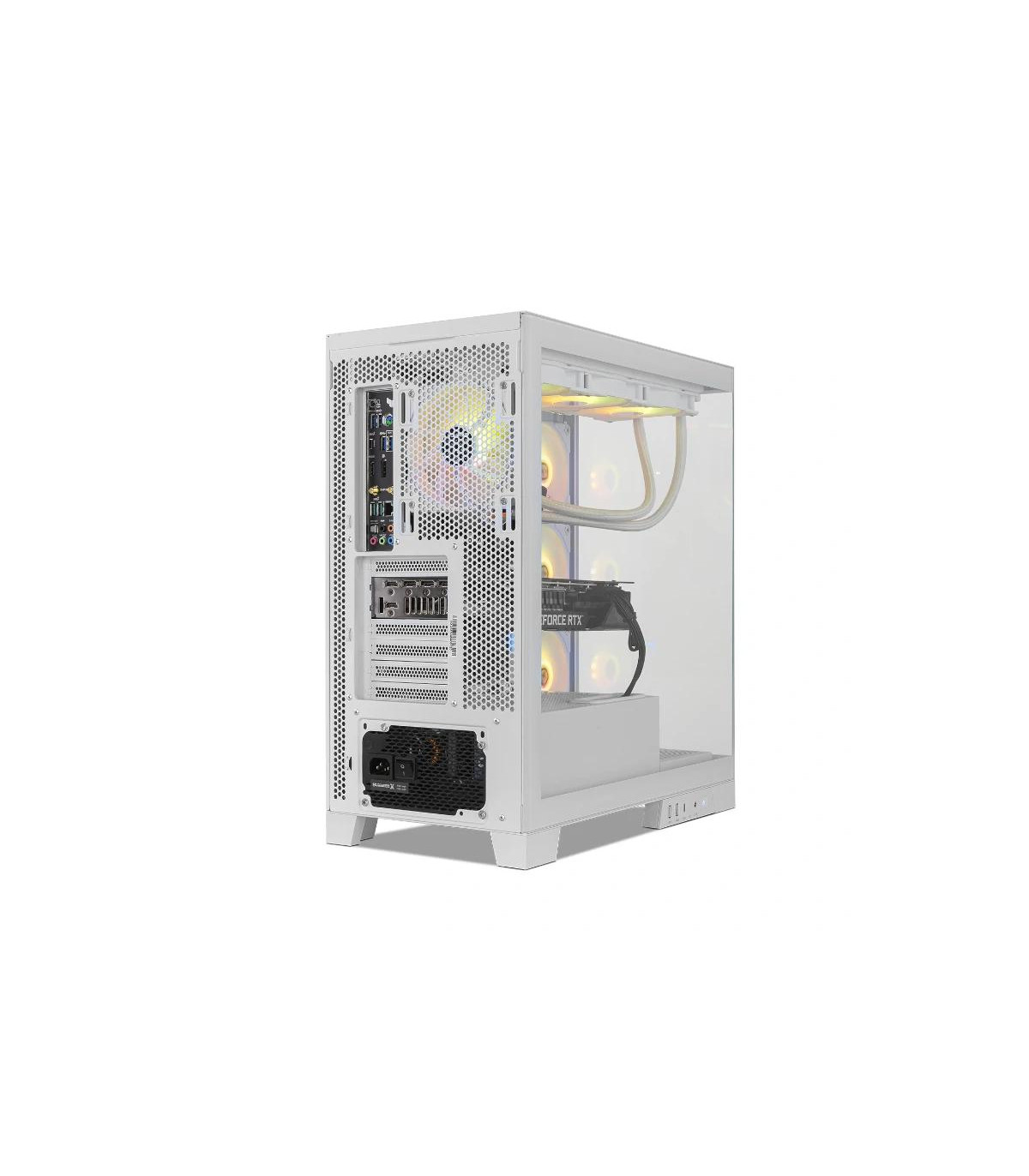 | Refrigeración | - Placa base: 3x 120 mm ARGB Easylink - Trasero: 1x 120 / 140 mm ARGB Easylink - Superior: 3x 120 / 2x 140 mm (no incluidos) - Inferior: 3x 120 mm (no incluidos) Opciones refrigeración líquida - Placa base: 240 / 280 / 360 mm - Superior: 120 / 240 / 280 / 360 mm - Trasero: 120 mm |