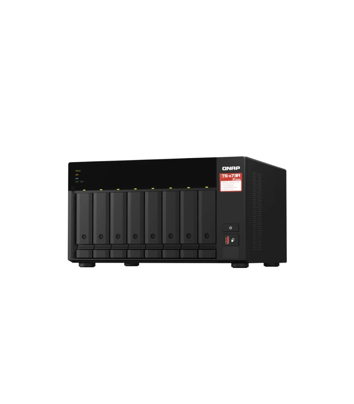 | Almacenamiento | - Memoria flash: 5GB (protección del sistema operativo de doble arranque) - Bahía para unidades: 8 unidades SATA de 3,5" 6 Gb/s, 3Gb/s * El sistema se envía sin unidad de disco duro * Para ver la lista de compatibilidad de discos duros, visite https://www.qnap.com/compatibility/ - Compatibilidad de unidades: Unidades de disco duro SATA de 3,5 pulgadas Unidades de estado sólido SATA de 2,5 pulgadas - Ranura M.2: 2 x ranuras para M.2 2280 PCIe Gen3 x1 - Intercambiable en caliente - Compatibilidad con aceleración de caché SSD - Salida directa de GPU Sistema de archivos - Unidades internas: EXT4 - Unidades externas: EXT3, EXT4, NTFS, FAT32, HFS+, y exFAT (optional for ARM model) Tipos de RAID compatibles - 8-bay (y más): JBOD, Single, RAID 0, 1, 5, 6, 10, 50, 60 - 6-bay: JBOD, Single, RAID 0, 1, 5, 6, 10, 50 - 4-bay: JBOD, Single, RAID 0, 1, 5, 6, 10 - 2-bay: JBOD, Single, RAID 0, 1 Gestión de almacenamiento - Tamaño máximo de volumen individual: 250 TB - Número máximo de volúmenes internos: 128 - Tamaño máximo de carpetas compartidas: 250 TB - Número máximo de carpetas compartidas: 512 |