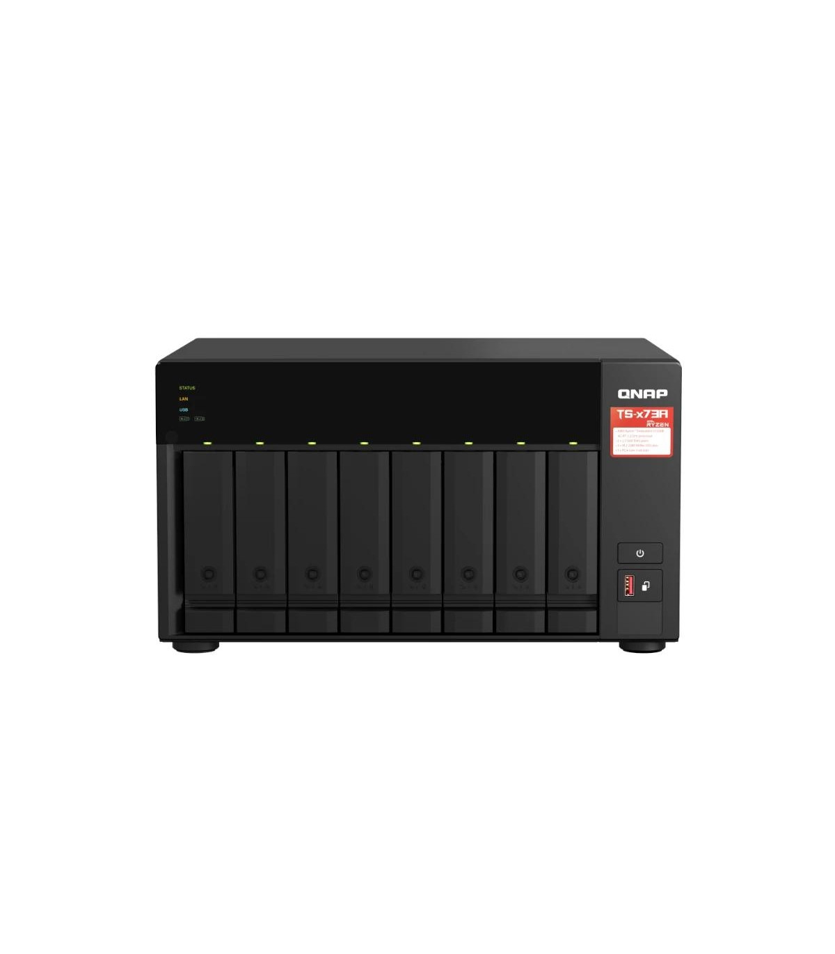 | Características | - Wake-on-LAN (WOL) Solo el puerto 2,5GbE - Jumbo Frame Físicas - Indicadores LED: Estado/Alimentación, USB, LAN, unidad 1-8, SSD M.2 1-2 - Botones: Encendido, restablecimiento, copia de un toque USB - Temperatura operativa: 0 - 40 °C - Temperatura de almacenamiento: -20 - 70°C - Humedad relativa: 5 ~ 95 % de humedad relativa sin condensación, bulbo húmedo: 27 ºC - Unidad de alimentación eléctrica: 250W PSU, 100-240 V - Consumo de energía: Modo suspensión de disco duro: 25,668 W - Consumo de energía: Modo de funcionamiento, típico: 54,067 W - Ventilador: Ventilador del sistema: 2 de 120 mm Ventilador de CPU: 1 de 60 mm - Advertencia del sistema: Timbre - Ranura de seguridad Kensington - N.º máx. de conexiones simultáneas (CIFS): con memoria máx.: 2000 Dimensiones y peso - 180,2 × 329,3 × 279,6 mm - 7,4 kg |