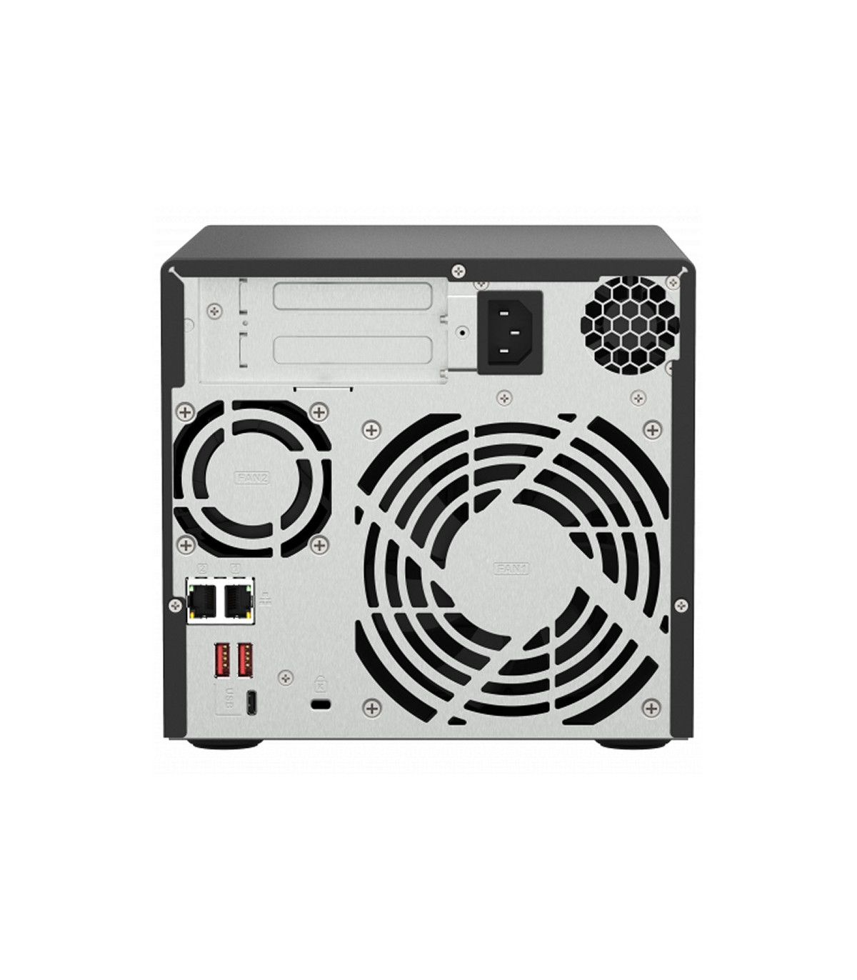 | Características | - Wake-on-LAN (WOL) - Jumbo Frame - Sensor de IR: (QNAP RM-IR004) - Servidor de archivos: Uso compartido de archivos en Windows, Mac y Linux / UNIX Redes de Microsoft (CIFS / SMB) Redes de Apple (AFP) Servicios NFS versión 3/4 - Servidor FTP: QuFTP Protocolos FTP, SFTP y TFTP FTP sobre SSL / TLS (FTPS explícito) Soporte FXP - Conexión FTP máxima: 1024 - File Station (Web) - Almacenamiento de objetos - Cuenta de usuario local: 4096 - Cuenta de grupo local: 512 - Usuario de dominio / cuenta de grupo: 200.000 Físicas - Formato: Torre - Indicadores LED: Estado/Alimentación, USB, LAN, unidad 1-4, SSD M.2 1-2 - Botones: Encendido, Reinicio, copia de un toque USB - Dimensiones (Altura x Anchura x Profundidad): 188,2 × 199,3 × 280,8 mm - Peso (neto): 5.03 kg - Peso (bruto): 6.04 kg - Temperatura operativa: 0 - 40 °C (32°F - 104°F) - Temperatura de almacenamiento: -20 - 70°C (-4°F - 158°F) - Humedad relativa: 5 ~ 95 % de humedad relativa sin condensación, bulbo húmedo: 27 ?C (80,6 ?F) - Unidad de alimentación eléctrica: 250 W, 100-240 V de CA, 50-60 Hz, 3,5 A - Consumo de energía: Modo suspensión de disco duro: 19.576 W - Consumo de energía: Modo de funcionamiento, típico: 29.792 W - Ventilador: Ventilador del sistema: 1 de 120 mm - Ventilador de CPU: 1 de 60 mm - Nivel de sonido: 21,4 db(A) - Advertencia del sistema: Timbre - Max. Number of Concurrent Connections (CIFS) - with Max. Memory: 2000 |