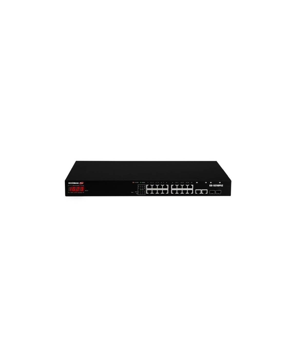 - Pantalla LED de 4 dígitos que muestra la potencia Total de PoE, la potencia disponible y el consumo de energía.