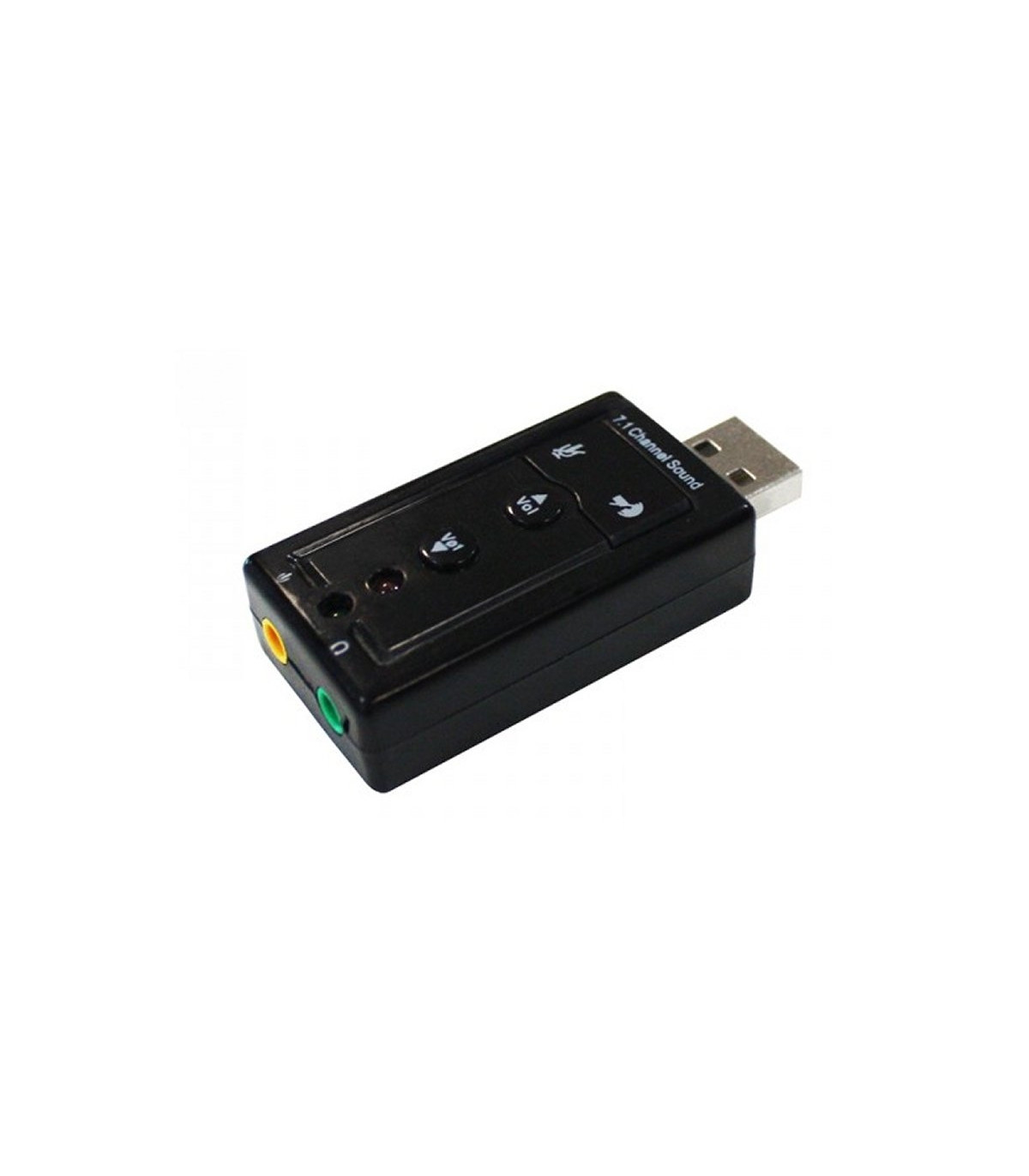 | Características | - Calidad de sonido 7.1 - Sonido 3D - Plug&Play - Entrada Jack 3.5mm para micrófono - Salida Audio Jack 3.5mm - Alimentación por USB - Botones de cancelación de audio o micrófono - Botones de control de volumen - Conexión USB 2.0 - Entrada Jack 3.5mm para micrófono - Salida Audio Jack 3.5mm Requisitos del sistema - 1 Puerto USB 2.0 libre - Windows XP/Vista/7/8 |